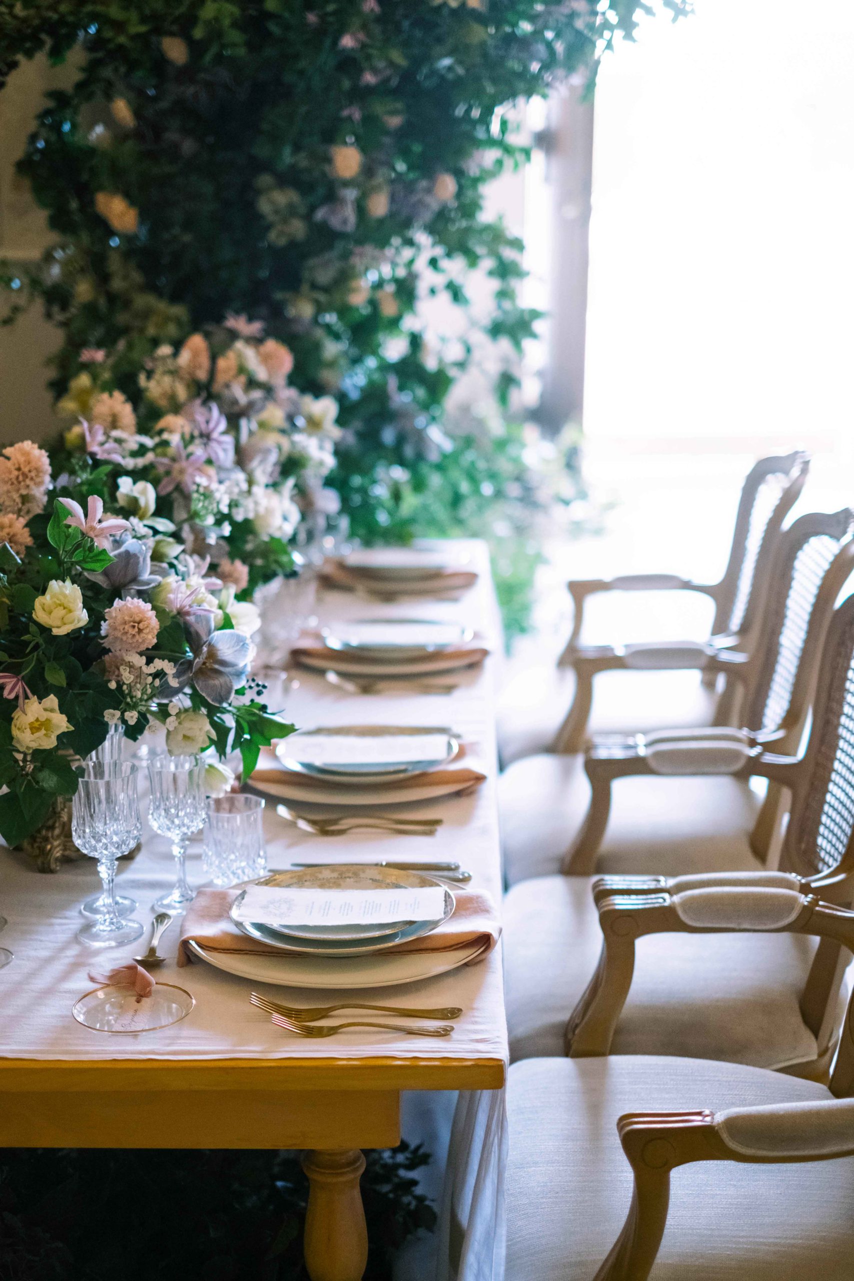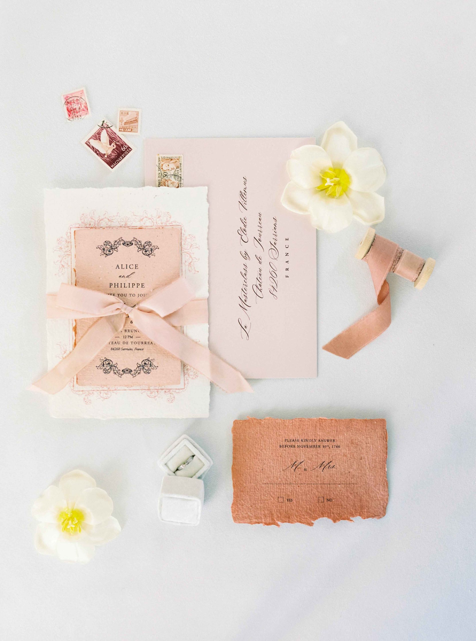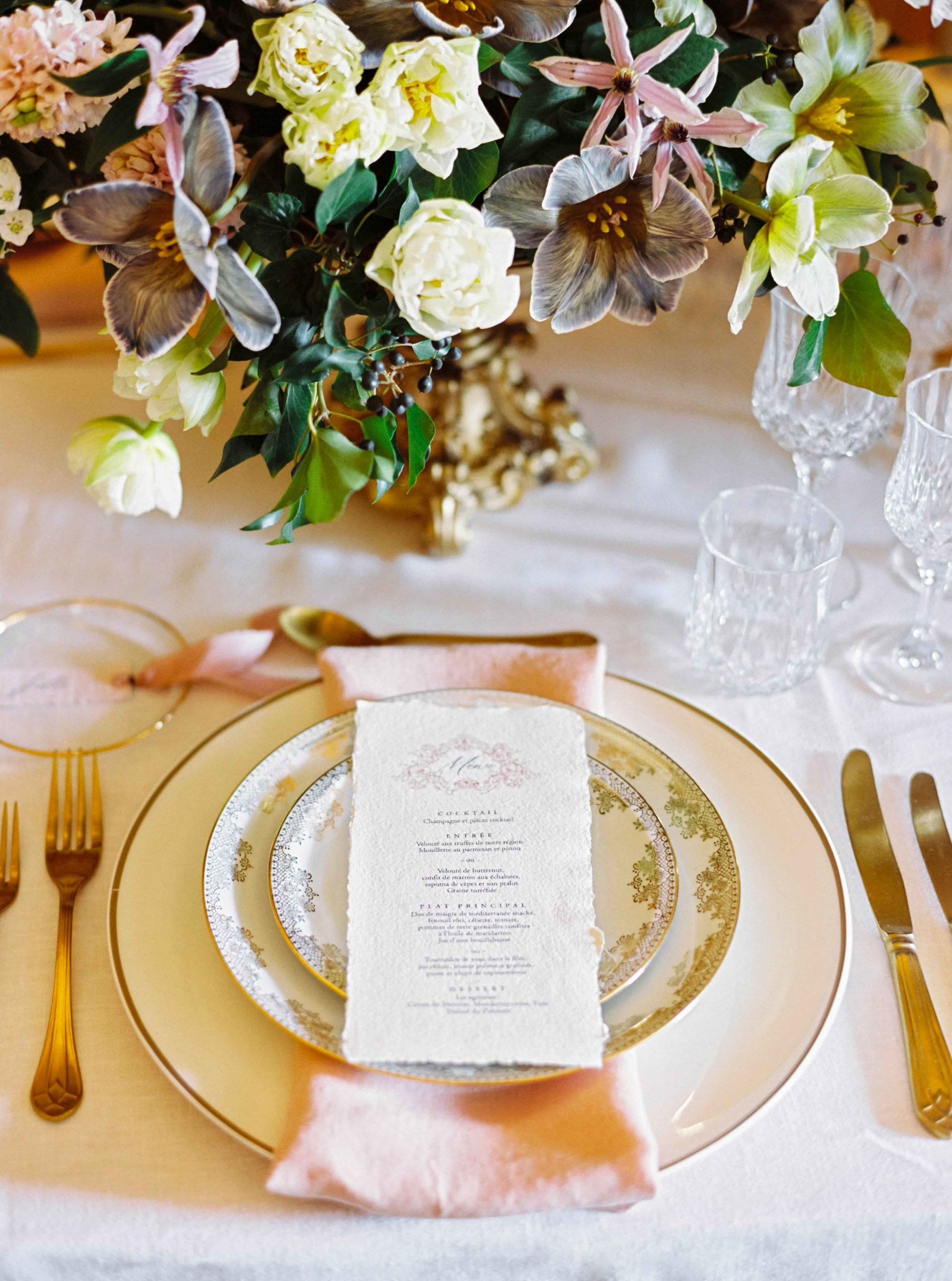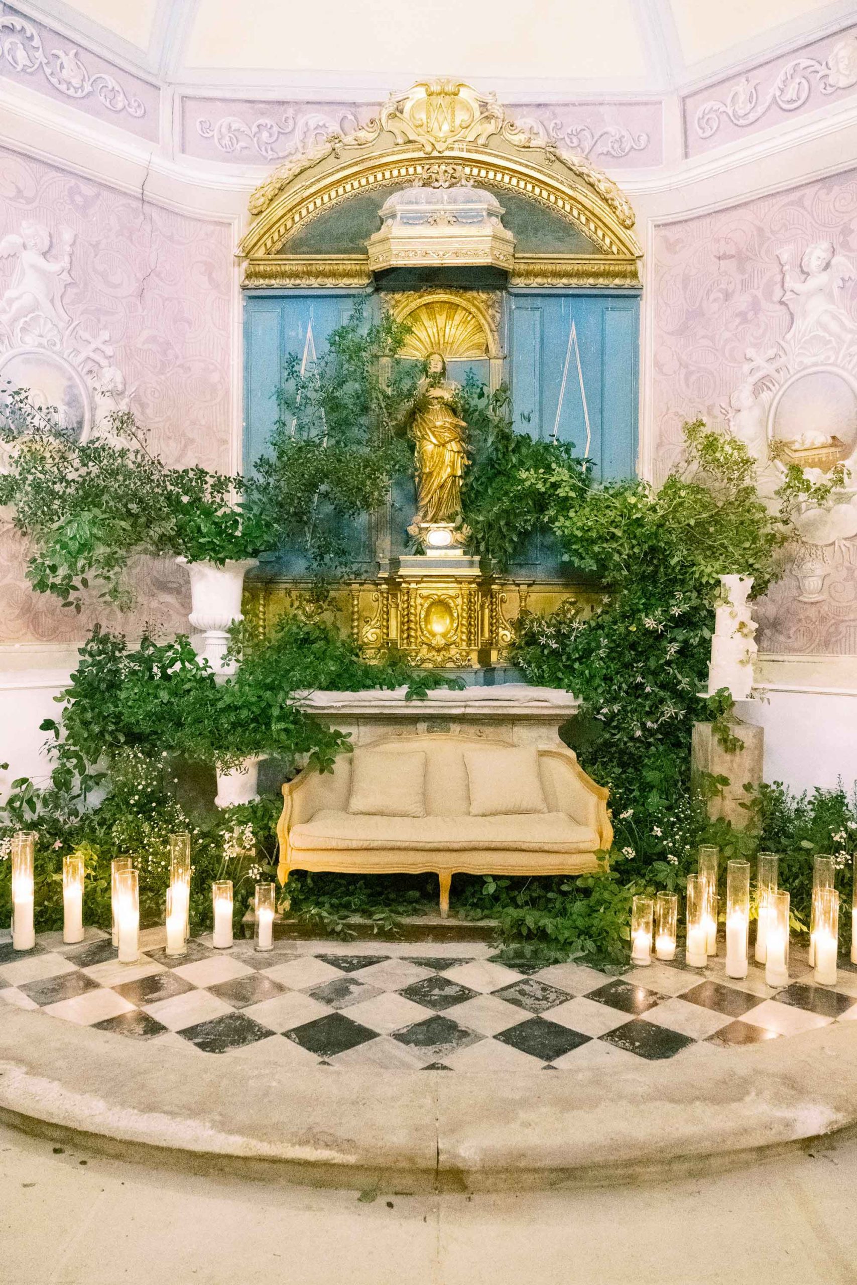 A la fois mystique et mystérieux, on passe du rêve à la réalité, des temps anciens à nos jours, mais toujours avec cette lumière qui illumine et met en valeur chaque détail grâce à l’œil expert de JEREMY FERRERO qui a maîtrisé et manié aussi bien la lumière que l’obscurité. De la papeterie créée par CRÈME DE PAPIER à travers laquelle on sent les époques révolues, au design floral très dynamique et moderne proposé par FLORÉSIE qui apporte poésie et rêve dans cette ancienne chapelle du 17ème siècle ou encore dans cette église en plein air. De l’impression d’un château français endormi qui est retranscrit par le wedding cake utilisé à l’époque par l’incroyable cake designer MADE IN CAKE ou par cette magnifique arche d’une hauteur exceptionnelle qui donne cette impression de nature qui reprend ses droits. Tous les détails ont été maîtrisés par des vendeurs de mariage de rêve pour cet éditorial de mariage unique qui s’est réuni dans la belle Provence. »