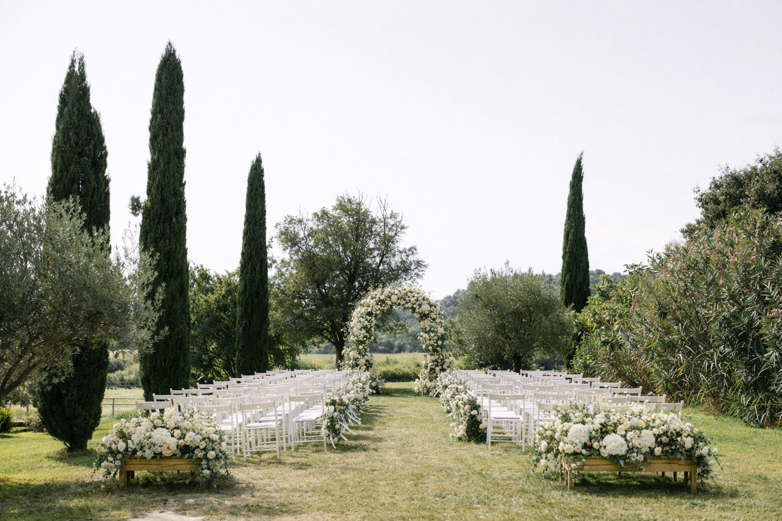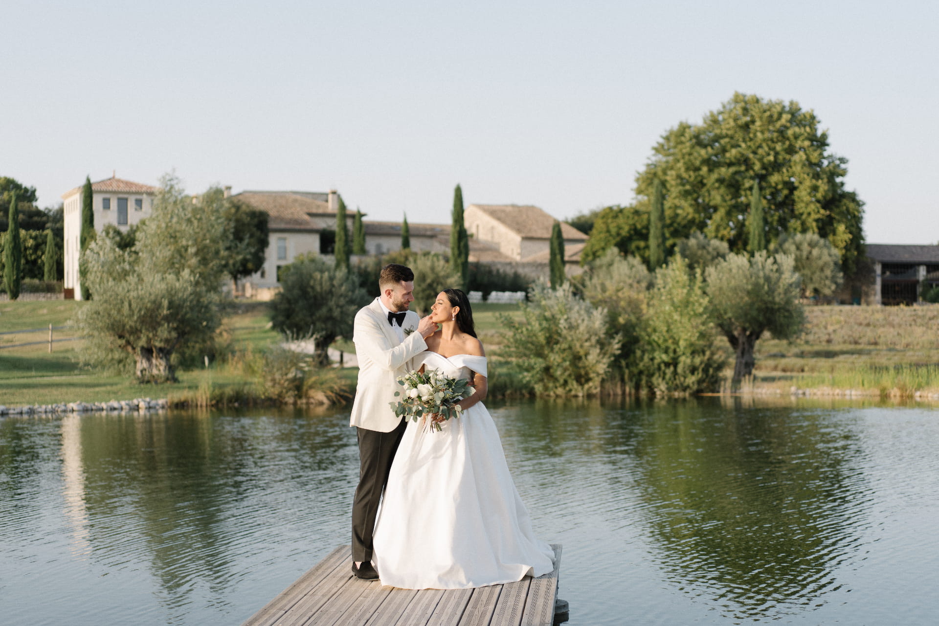 Kate & Hunter, franco-anglais venus de Londres, ont choisi l’un des plus beaux lieux de Provence pour célébrer leur union. Entre lavandes parfumées, oliviers centenaires, cigales et vieilles pierres baignées de lumière, le décor semblait suspendu dans le temps.