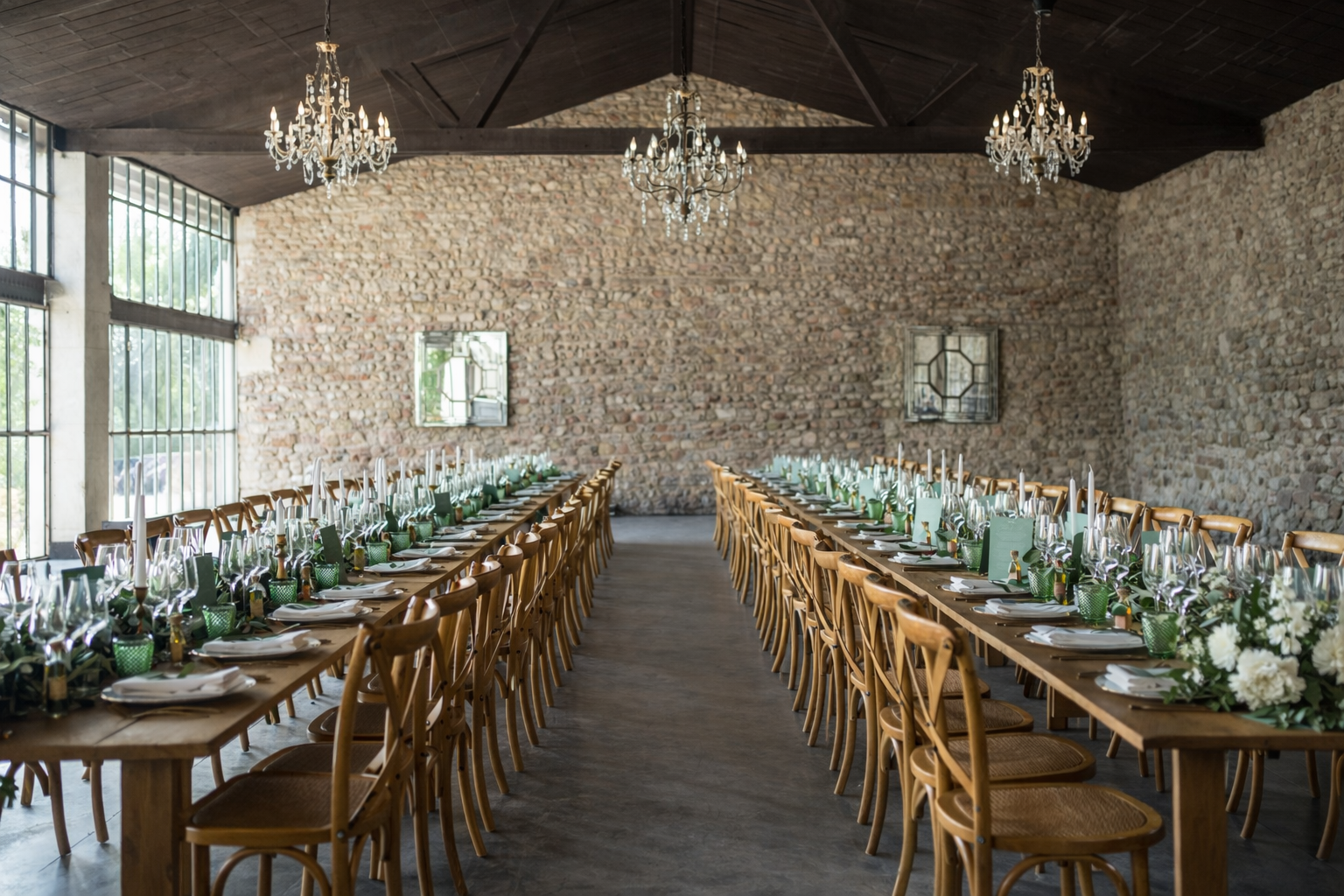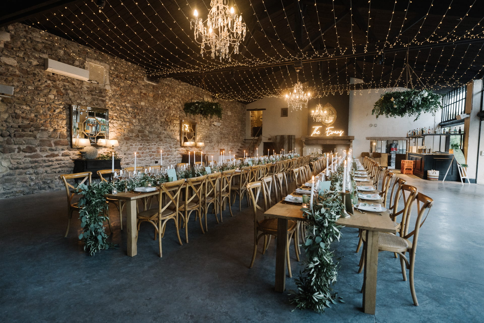 Ils imaginaient un mariage chic et naturel. Nous avons conçu une décoration à la fois pleine et épurée : des compositions généreuses mais aériennes, des matières nobles, une élégance douce qui laissait respirer la beauté du lieu.